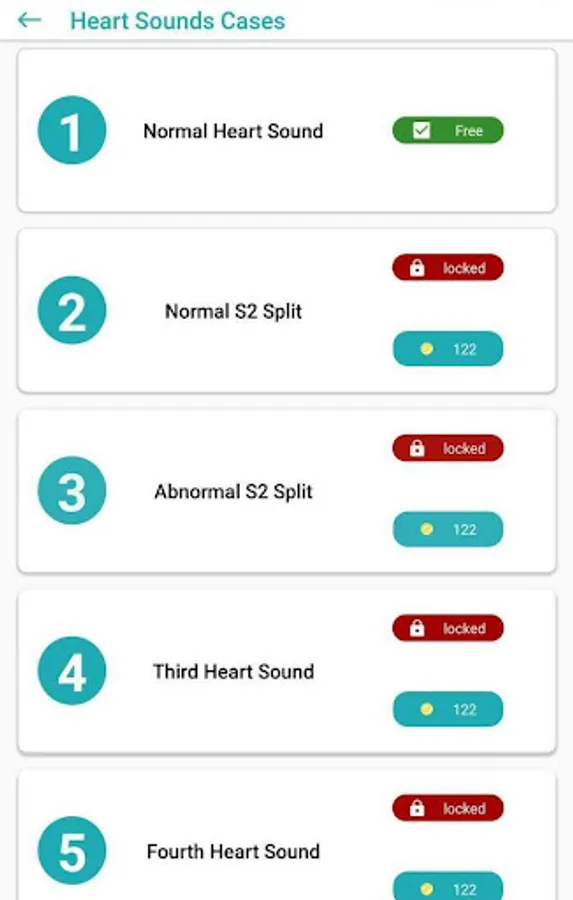 The app includes auscultation sounds from 23 heart sounds and murmurs. An excellent one with explanations in both Japanese and English.
