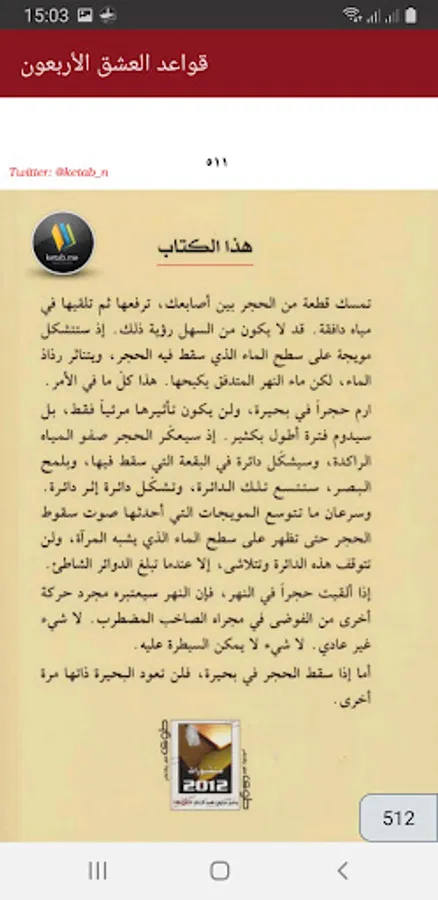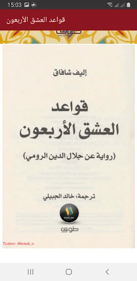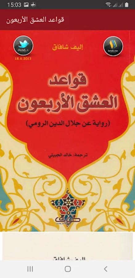 The Forty Rules of Love is a novel by the Turkish writer Alif Shafak, published after her novel The Bastard of Istanbul. In this novel, the author narrates two parallel stories, one in contemporary times and the other in the thirteenth century, when Rumi confronted his spiritual guide, the traveling dervish known as “Shams of Tabriz,” and how they... Together they embodied the eternal message of love poetry.