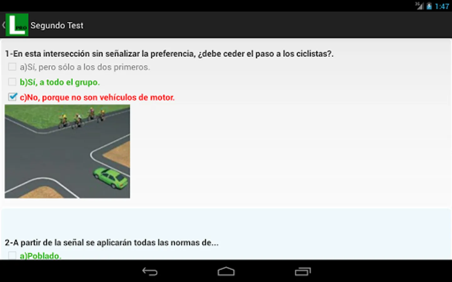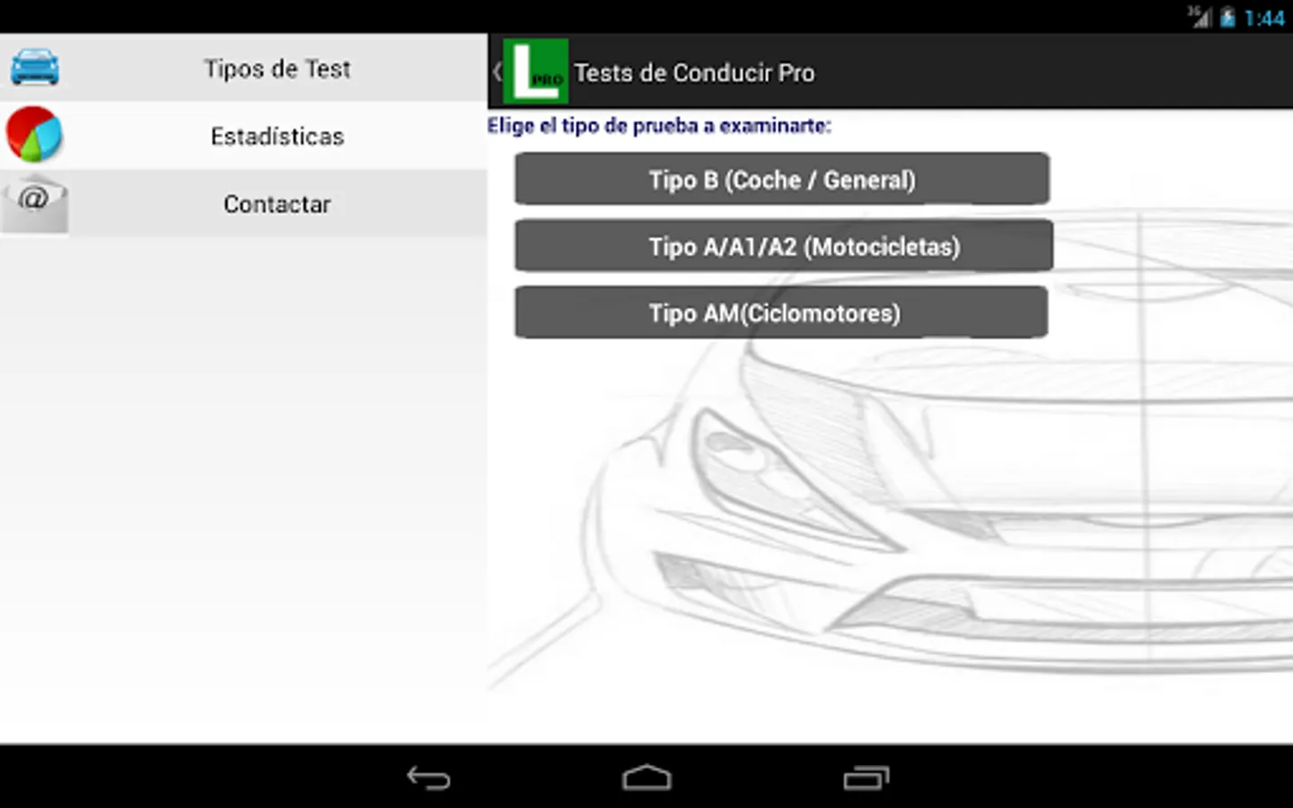 In this version of Driving Tests (Driving) you will find over 60 official exams DGT. 45 tests for the driving test overall (type B), 20 for the motorcycle (type A/A1/A2) and 15 for moped (type AM).