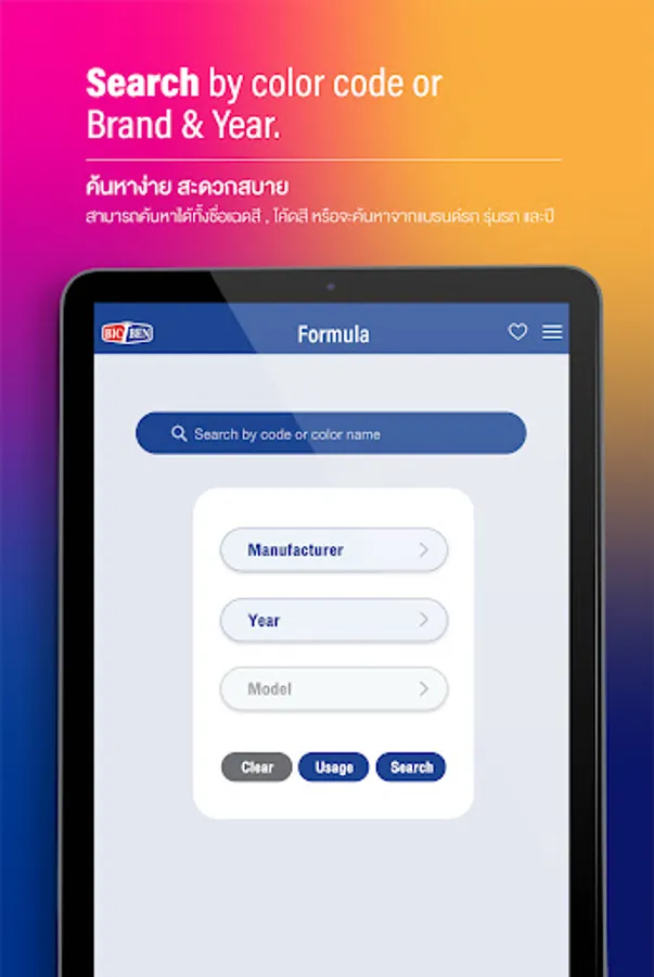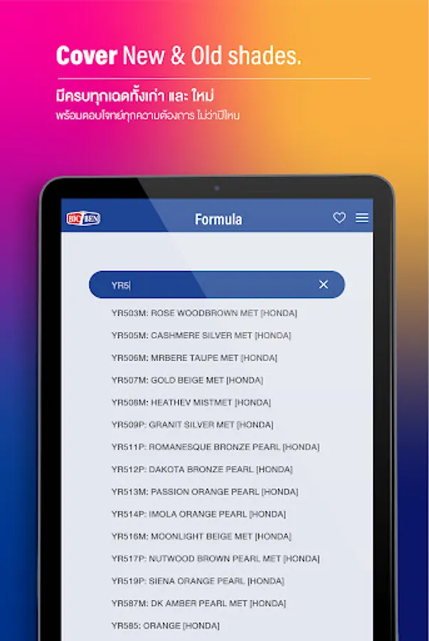 test Search formula colors App