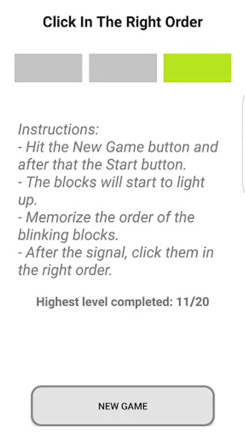 The task is to remember the order of the blinking blocks and click them in the same order.