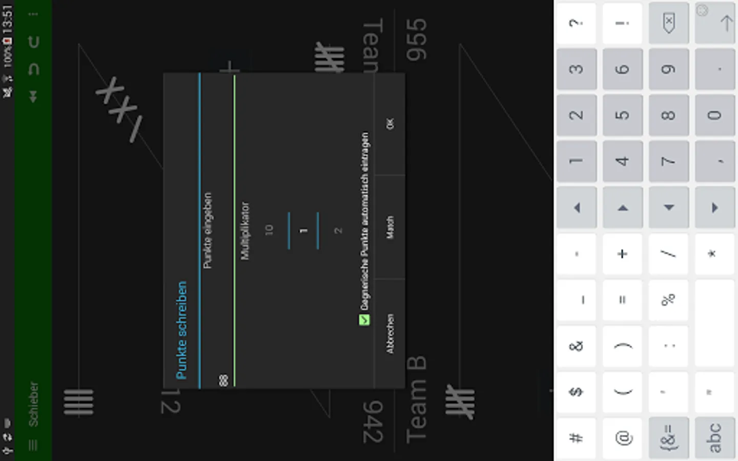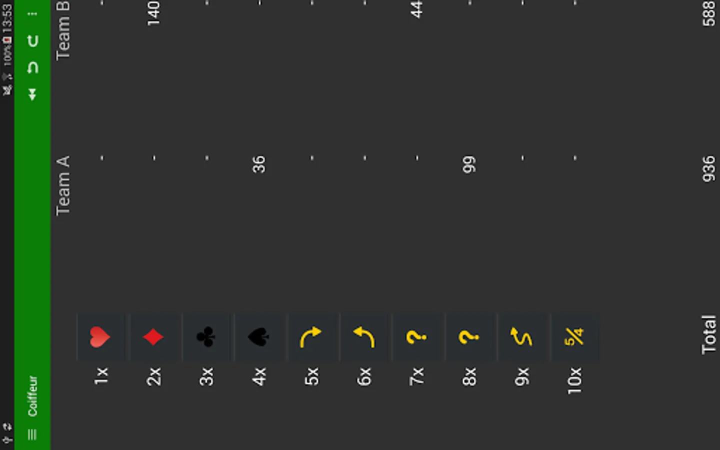 A useful tool to keep track of your scores on your phone or tablet while playing a traditional Swiss Jass. Supported variants include Schieber, Bieter, Coiffeur. The Pro version addionally supports Differenzler and Molotow.