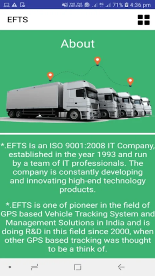 efts is a gps tacking.in this industry-specific solutions are fleet and logitic and container tracking and construcyion vehicles and oem companies and weste management and school tranportaion.this is tacking data to surver with the help of gps tool then find the tacking.