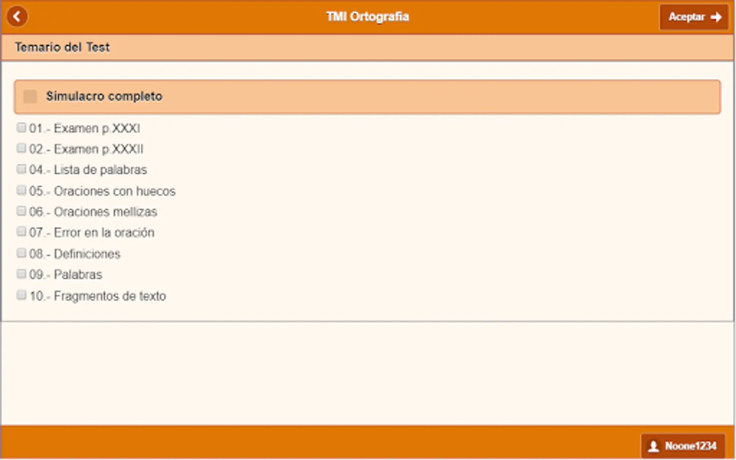 It also has the spelling tests of the oppositions of XXXI, XXXII, XXXIII, XXXIV and XXXV promotion of Basic Scale of National Police, as a sample of how are the official examinations in these examinations.