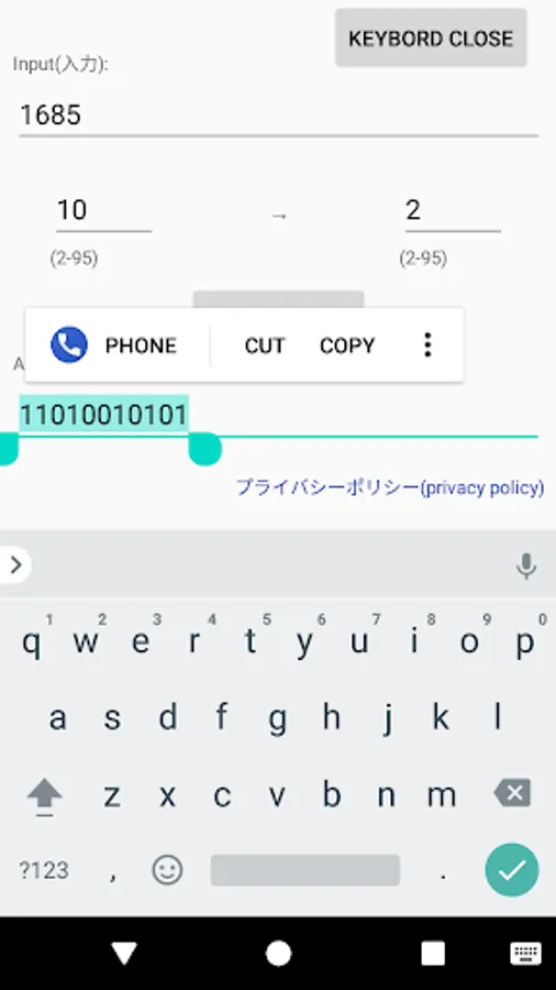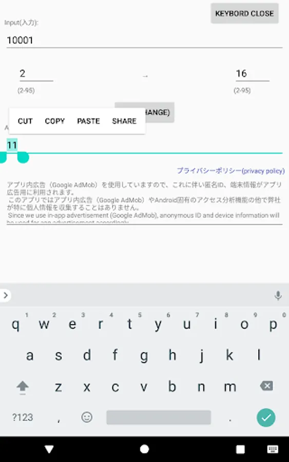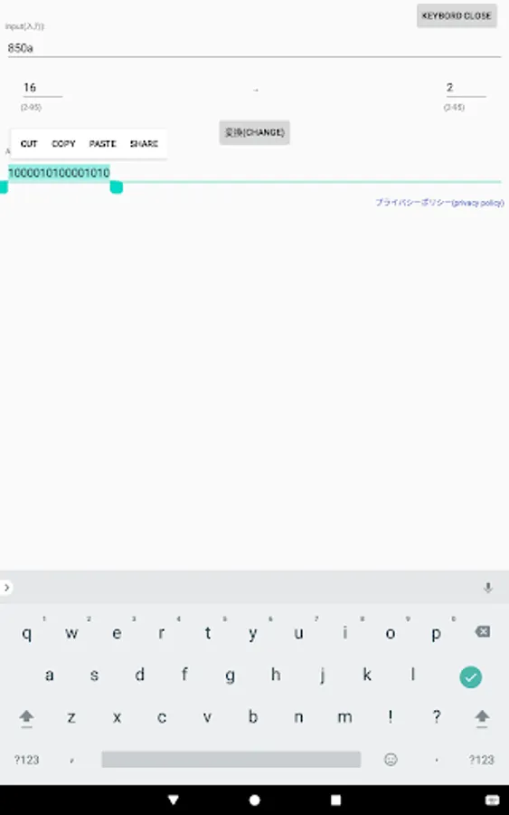 You can also paste from the clipboard to the input field and copy the result field. (From the upper right menu button)