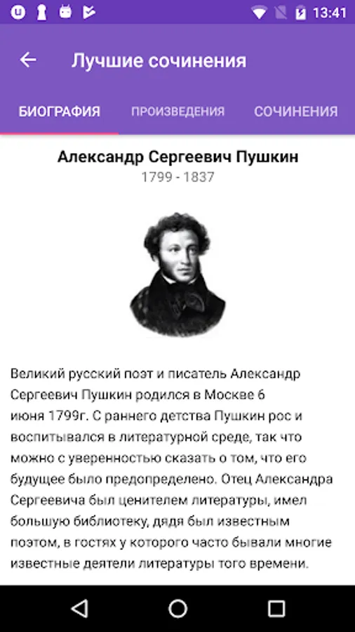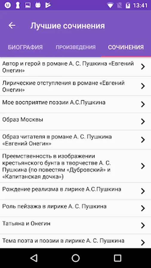 This appendix presents essays, summaries, descriptions, writers: Pushkin AS, AS Griboyedov, Lermontov M.Yu., NV Gogol, Anton Chekhov and many others.