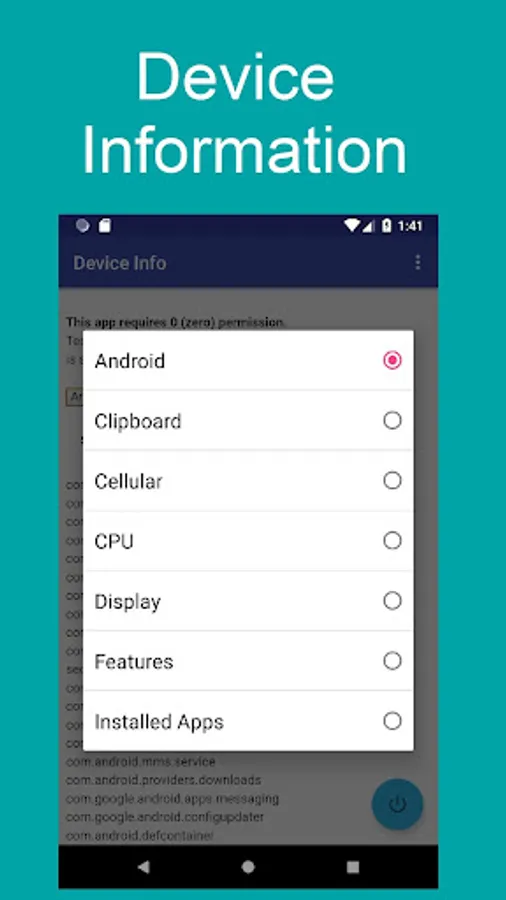 Display detailed information of your Android™ device. This is a tool to demonstrate the information capabilities of a simple Zero Permission App.