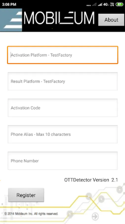 OTTDetector is an application for mobile phones provided by Mobileum. Its main function is to constantly collect information about the mobile terminal and its network states. The information collected by OTTDetector is transferred to the Test Factory servers, where they are analyzed/processed to generate reports and graphs regarding the configured tests/campaigns.