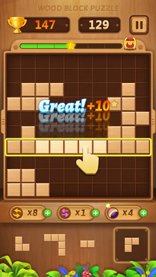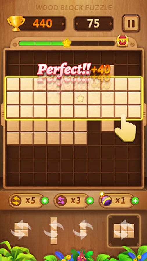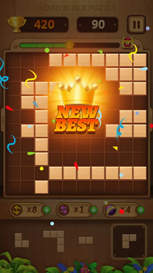 The goal of Wood Block Puzzle is to drop blocks in order to create and destroy full lines on the screen both vertically and horizontally. Don't forget to keep the blocks from filling the screen in this addictive puzzle game.