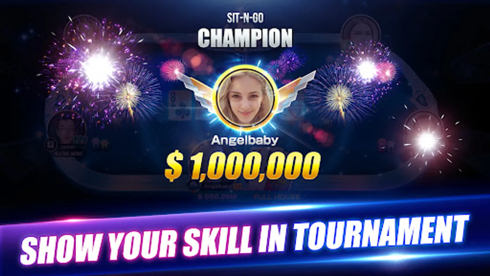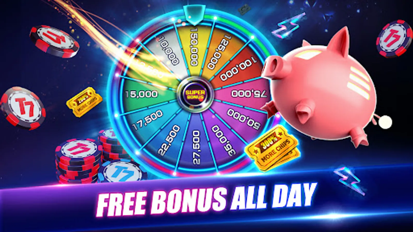 You will instantly receive 10,000 FREE chips upon signing up. Run out of chips? Check in daily or try your luck at the Super Roulette for FREE chips and AMAZING gifts! Download now and kickstart an epic career in online Texas Holdem!