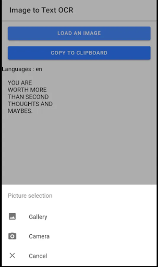 Using this app you will be able to get the text from images or using camera using the OCR technology.