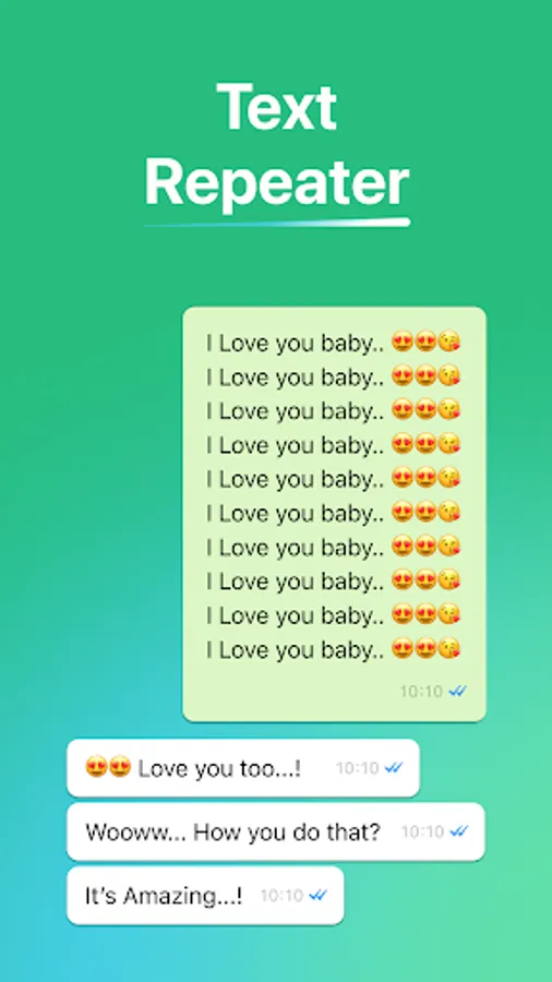 Download Text Repeater today and start sending multiple messages or repeating words over and over again.