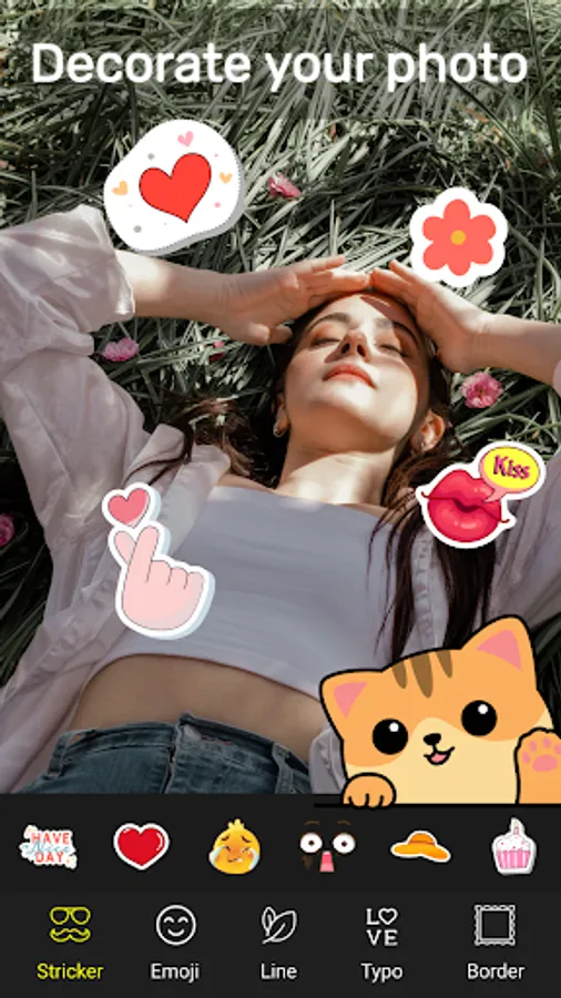 ✏ Lots of fun stickers to decorate your photos like dog face, cat face, anime face, emojis and more...