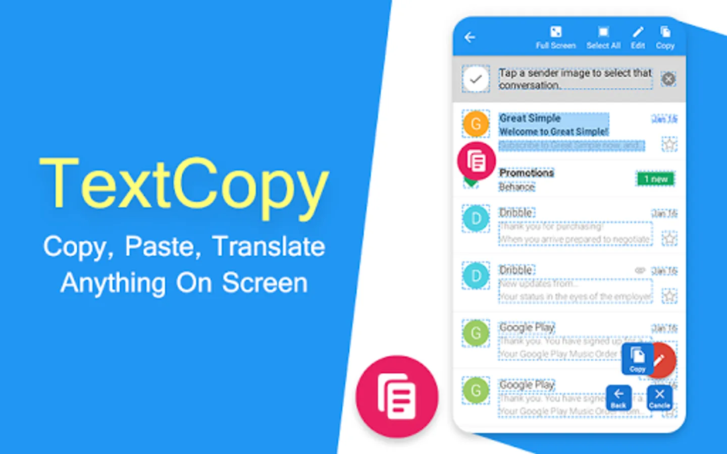 Easily Copy, Paste, Translate anything on screen using this Text Copy app.