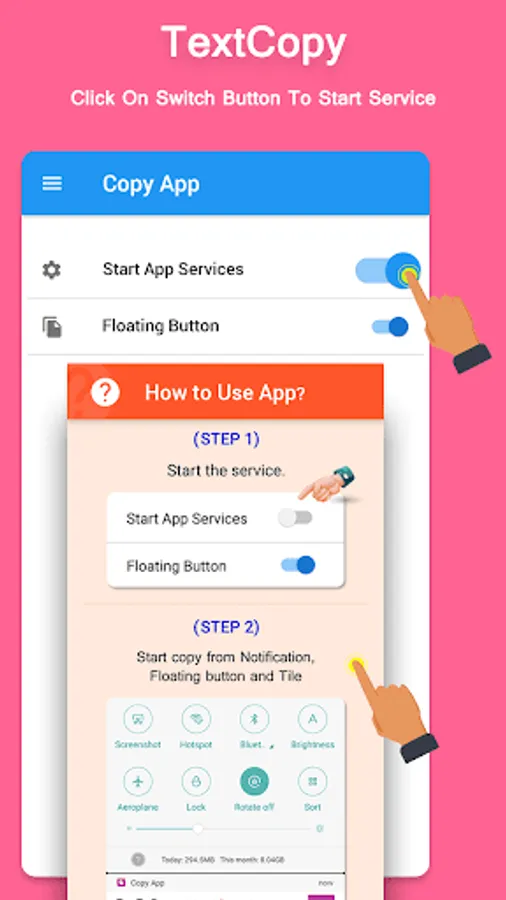 • Floating button helps to start copy text easily with any application.