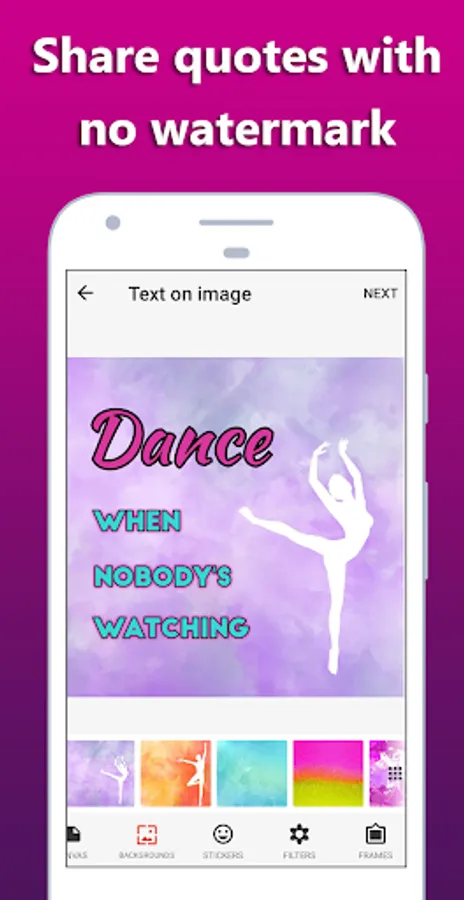 Moreover, you can use your own photos if you wish so. Import picture from your phone easy to use it as a quote background.