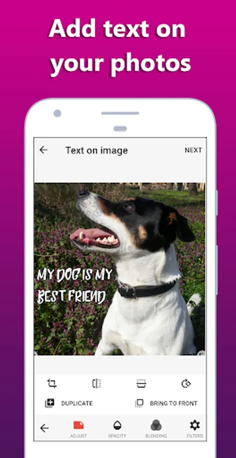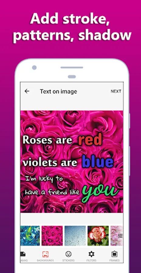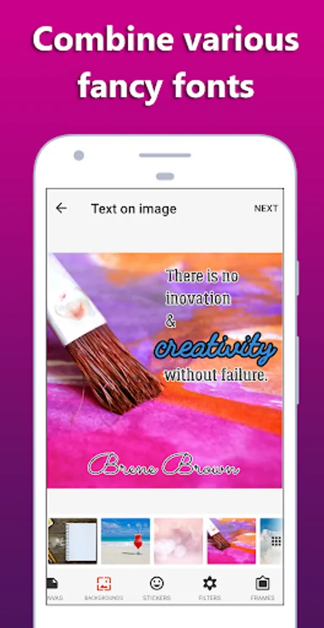 Add text to image with Text on Image | Make Quotes app. Choose between 200+ beautiful backgrounds for writing quotes on images or use your own photos. Make photo with quotes with any of numerous stylish fonts.