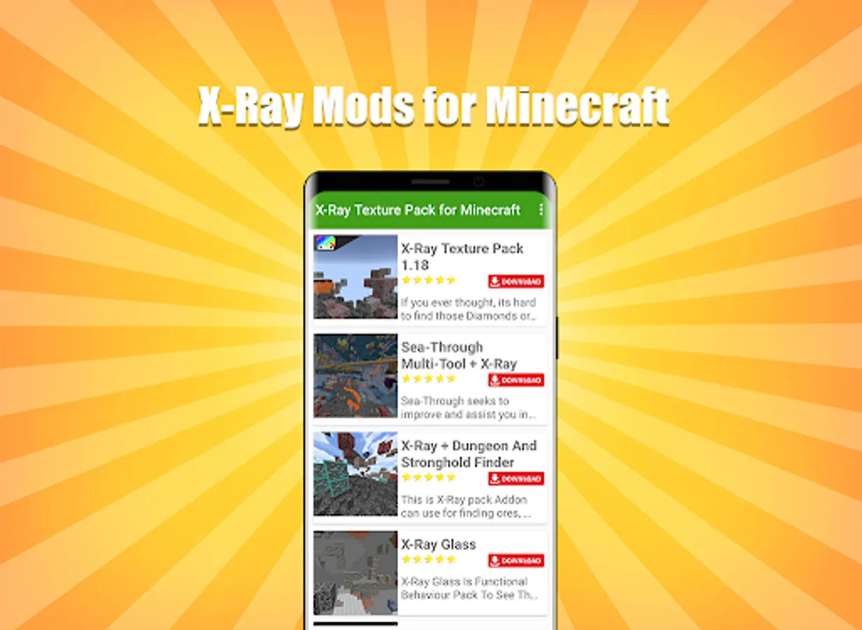X-Ray Texture Pack for Minecraft Pocket Edition is an application that give you the easiest way to install X-Ray Texture Pack into your Minecraft world. With our 1-Click installer, you'll be able to download & install Minecraft Mods, Addons, Maps, Texture Packs, or Skins in only 1 single tap!