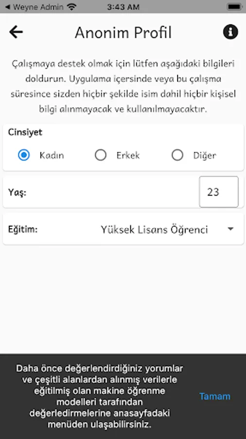 IOS application developed through the machine learning models, which were developed during the post-graduate thesis research under the heading The effect of message contents on human interface interaction and trained with the data received from different fields.