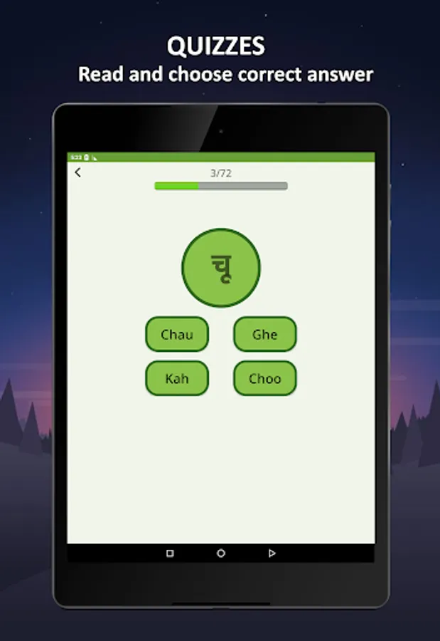 This application makes easy for beginner to memorize the Hindi alphabet (memorize Hindi script).