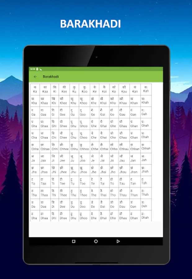 ✴ Memorize, Learn, Pronounce, Study, Write, Read, Remember, Spelling Hindi barakhadi, alphabet, symbols, characters, letters, script, syllable, language, number, varnamala easily.