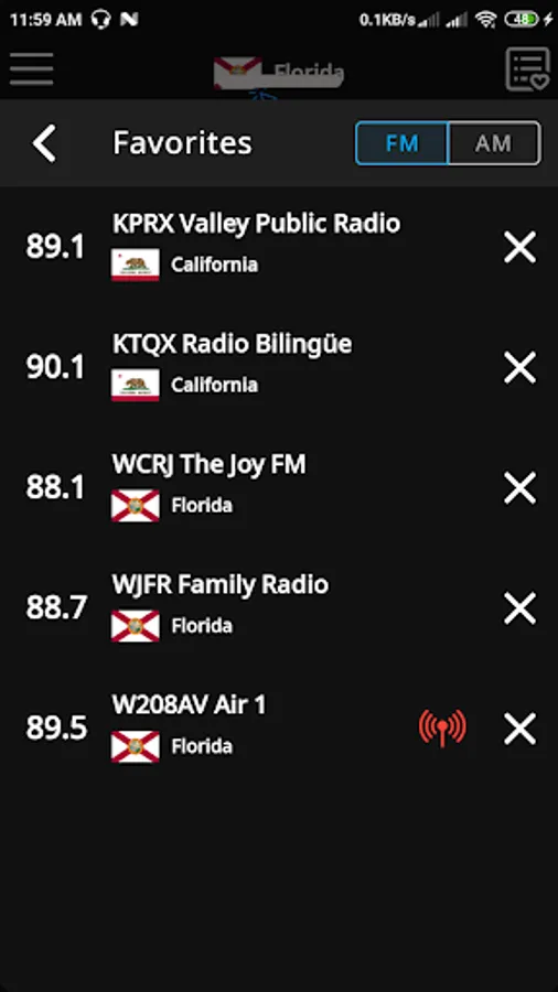 You can select a city from the country to review the full frequency band in selected location. Unique analog-like FM/AM tuner listed FM stations in the range 80.5—108.1 MHz (76.0-89.9 MHz in Japan, 65.9—74.00 in Russia and CI), AM stations in the range 531 - 1710. The available stations will display in screen, slide left or right to select your station and listen it.