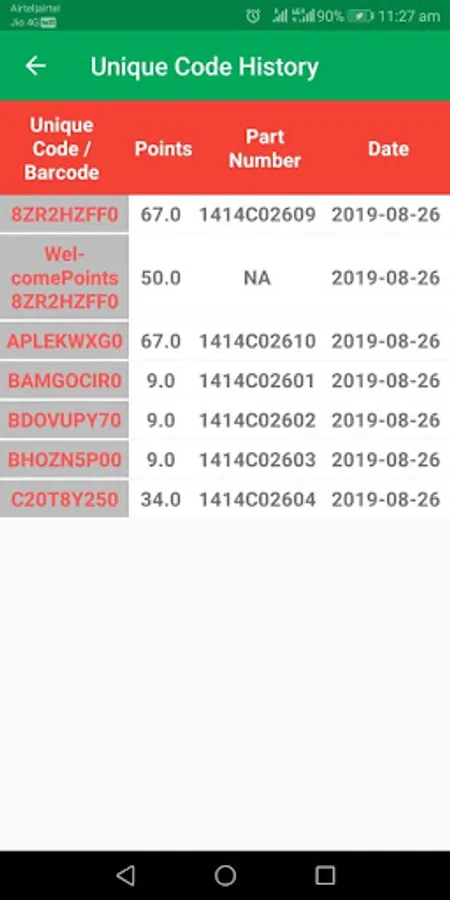 For every unique code messaged by the user, a text confirming the points added for that purchase and the total points available will be sent.