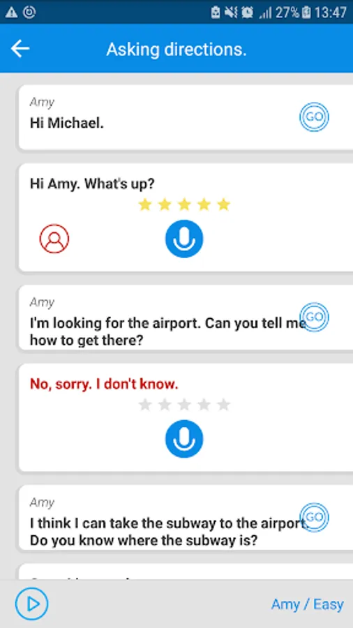 ► Listen to the English conversations then practice speaking yourself. You can speak English daily with a specific character to improve your speaking skill everyday.
