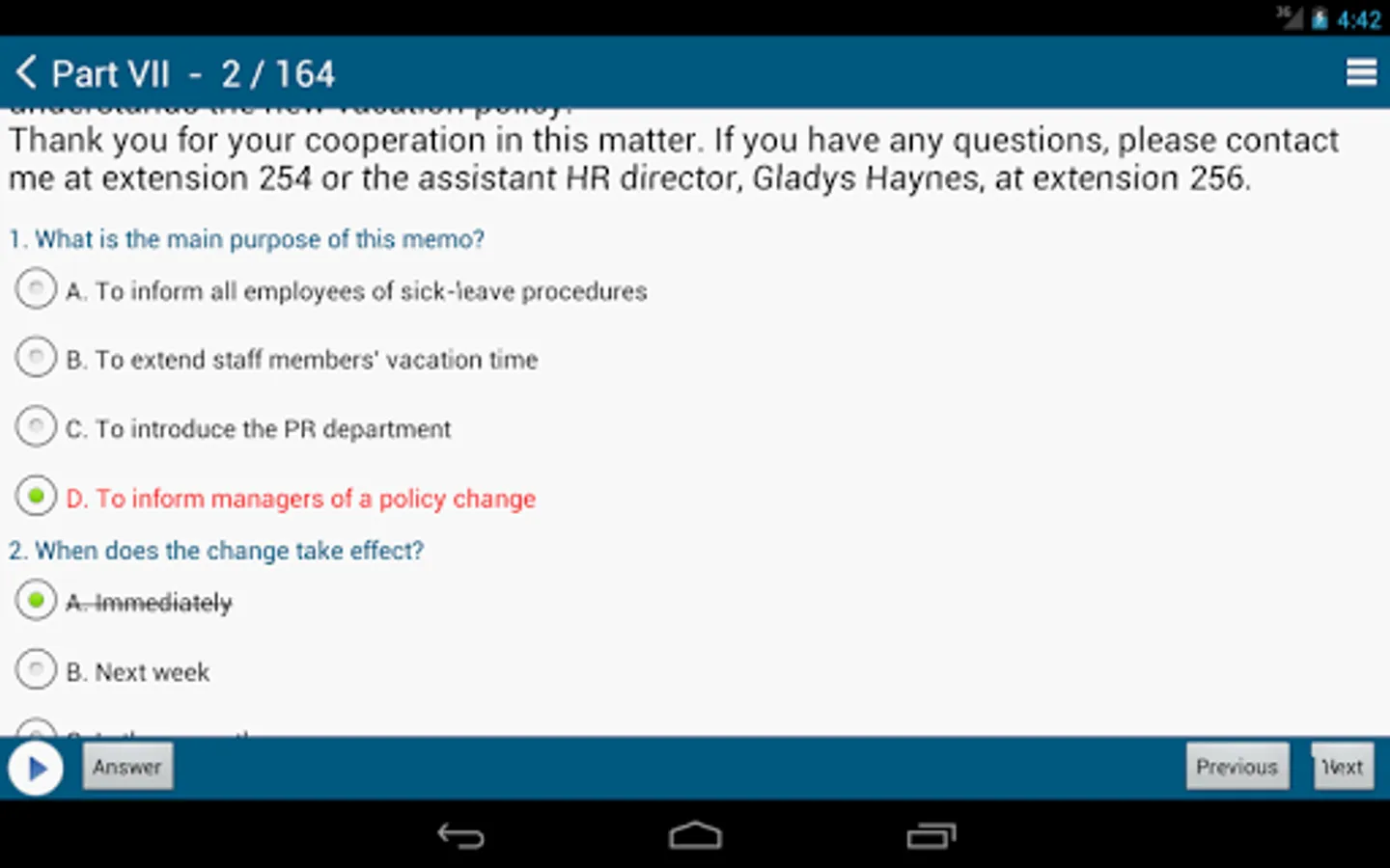 * Part 6 - Text Completion: Practice grammar and vocabulary.