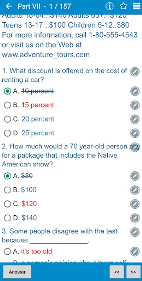 * Part 7 - Reading Comprehension: Read paragraphs then choose correct answer.