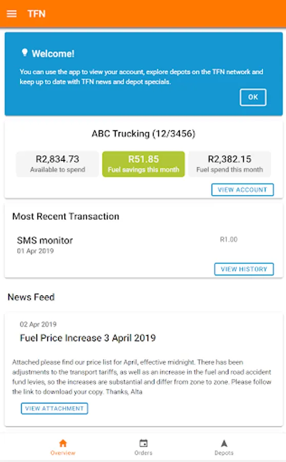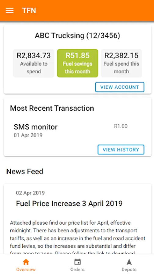 Via the app you have on-the-go access to your TFN account as well as access to the most commonly used fleet management tools TFN offer.