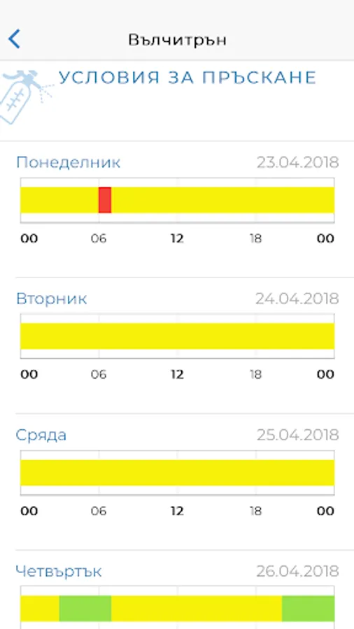 - Forecast appropriate days and times for events spraying crops with PPP or importation of liquid fertilizers.