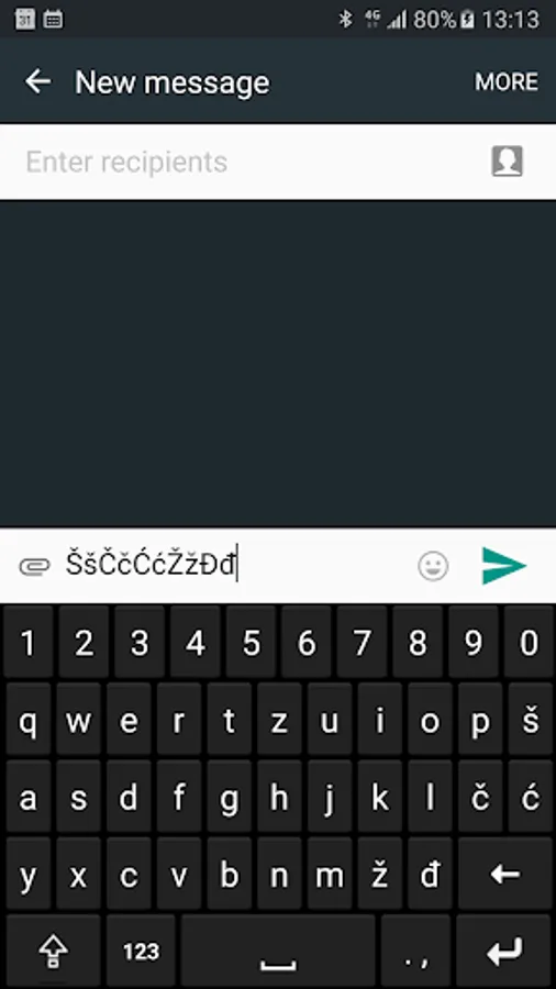 Hrvatska tipkovnica temeljena na Android SDK primjeru. Instalirati, omogućiti pod Language & keyboard, dugi pritisak na bilo koje polje za unos teksta i odabrati HR keyboard