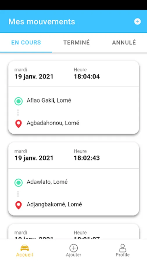 This application allows you to natively track your movements in a city, state or country. You have a condensed set of information to know the person who carries you on board his machine and information about the machine itself as well as its owner