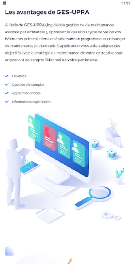 Using GES-UPRA (computer-aided maintenance management software), optimize the life cycle value of your buildings and facilities by establishing a multi-year maintenance program and budget. The application helps you align these objectives with your company's maintenance strategy while taking into account the real state of your assets.