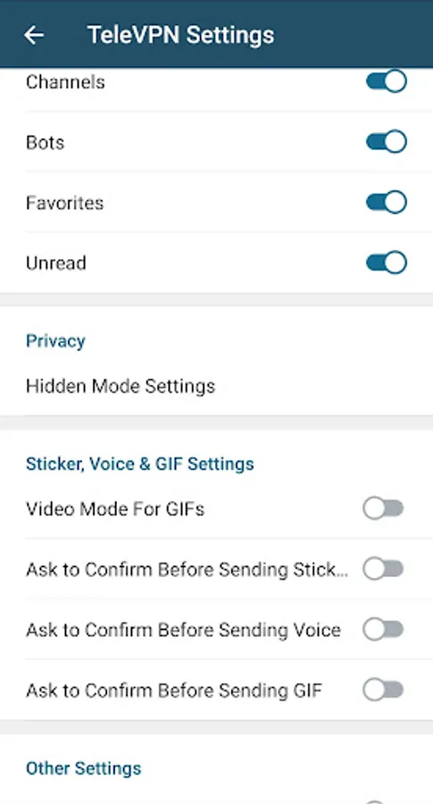 Experience a unique messaging journey with TeleVPN, an independent and unofficial Telegram messenger. Our platform is packed with practical features like ID Finder, Forward Without Quote, a shortcut for archiving messages, and a Contacts Changes List for staying updated with alterations in your contact list. Enjoy the privacy offered by our Hidden Section and gain control over your chats with Confirmation for Stickers, Gifs, and Voice Messages.