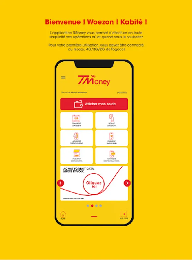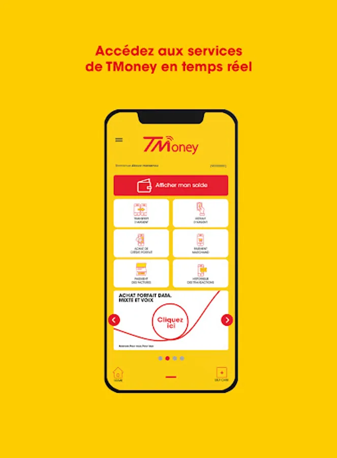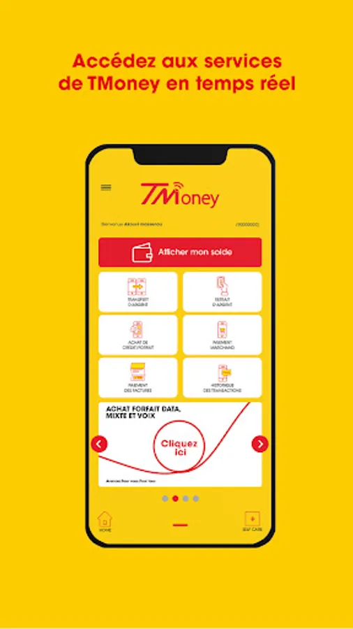 With a dynamic interface, the TMoney App is in perfect harmony with the latest technological developments in Mobile Money transactions.