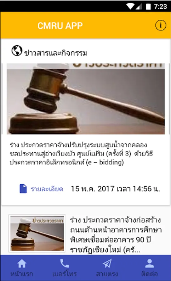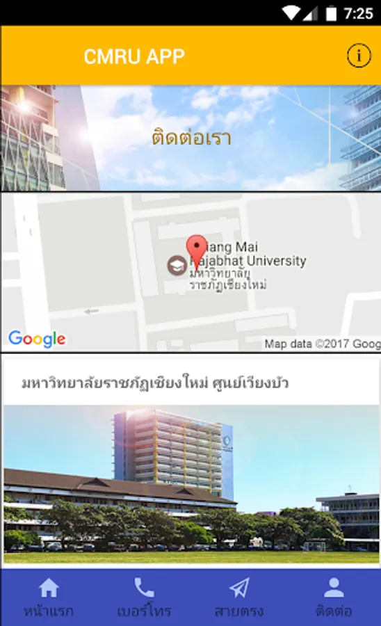 CMRU APP's Official Application for Mobile on the Android operating system that allows users to track news. Phone Search Within Student's academic calendar Activity within the gated Mai Rajabhat University.