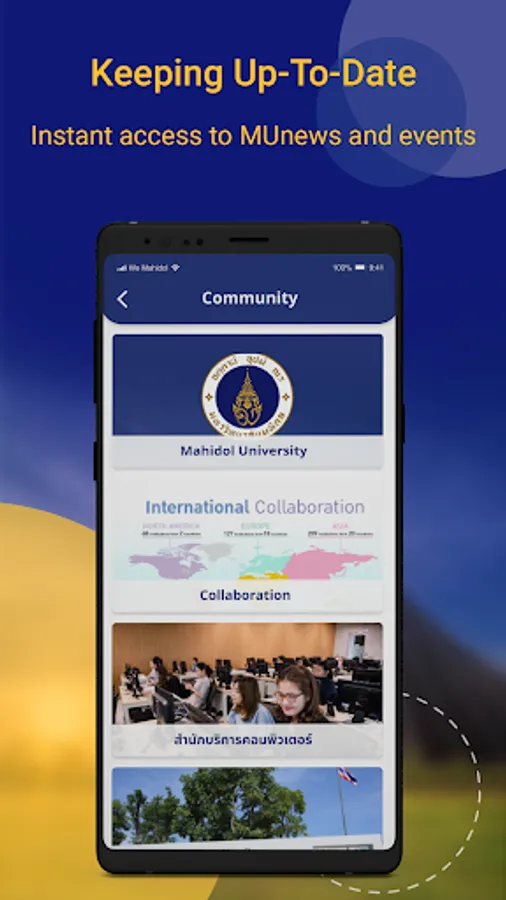 The application allows you to connect with the university anywhere anytime enabling you to stay up-to-date on any Mahidol news and events