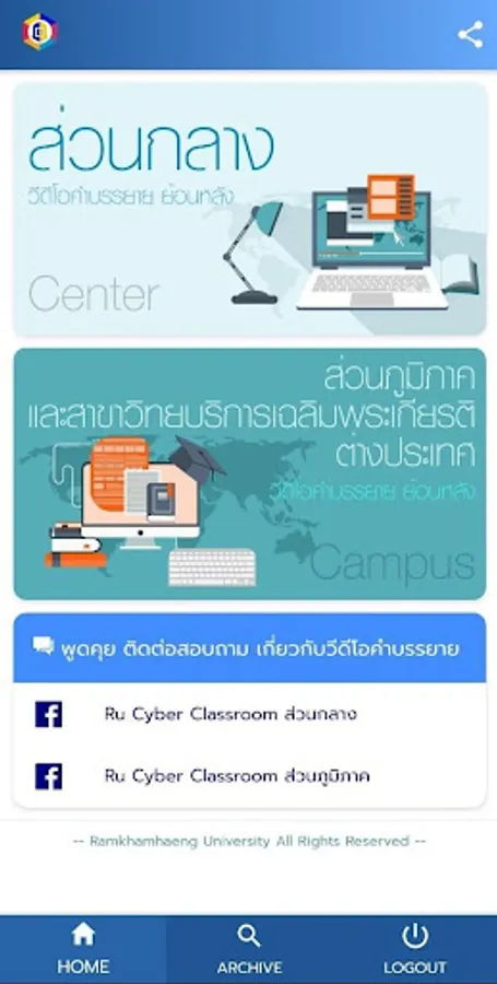 Course on Demand (M-Learning) Video Lecture Past Past For undergraduate students Ramkhamhaeng University