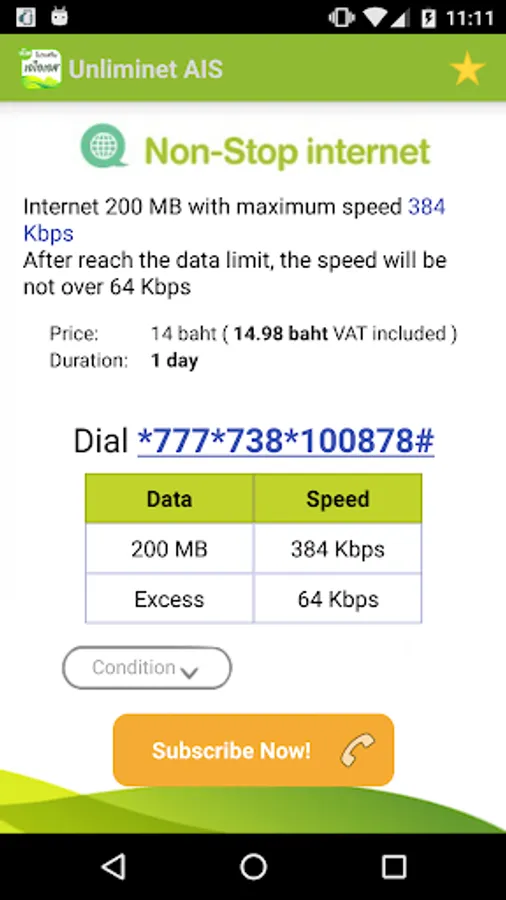This app can be Usable anywhere anytime cause by No Internet connection required. You can do subscription by USSD call. Simple and easy to use. Just one click.