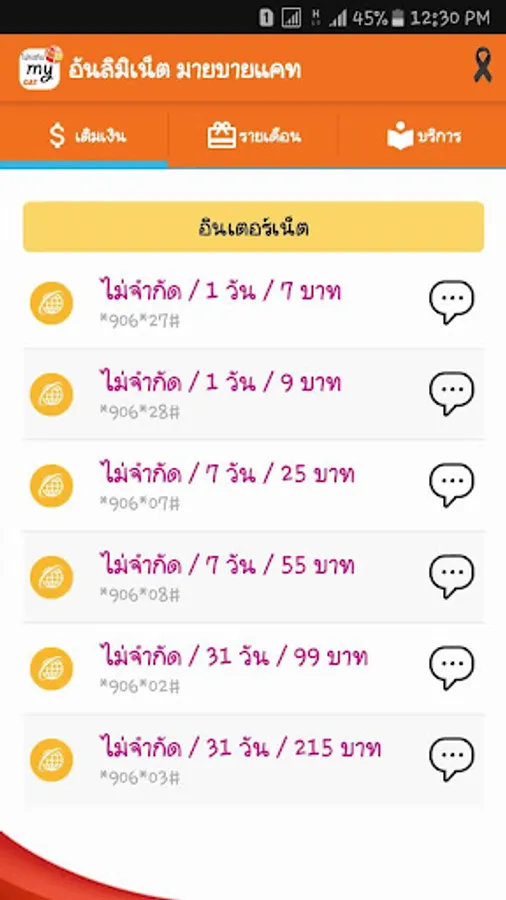 Unliminet my : Application for the hottest internet package promotion of my by CAT. This collection include all unlimited internet and social package such daily, weekly, monthly or any data depend on your lifestyle.