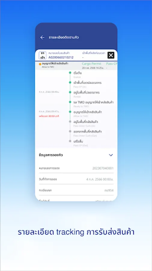 - สามารถค้นหาประวัติคิวของการ รับ-ส่ง สินค้า