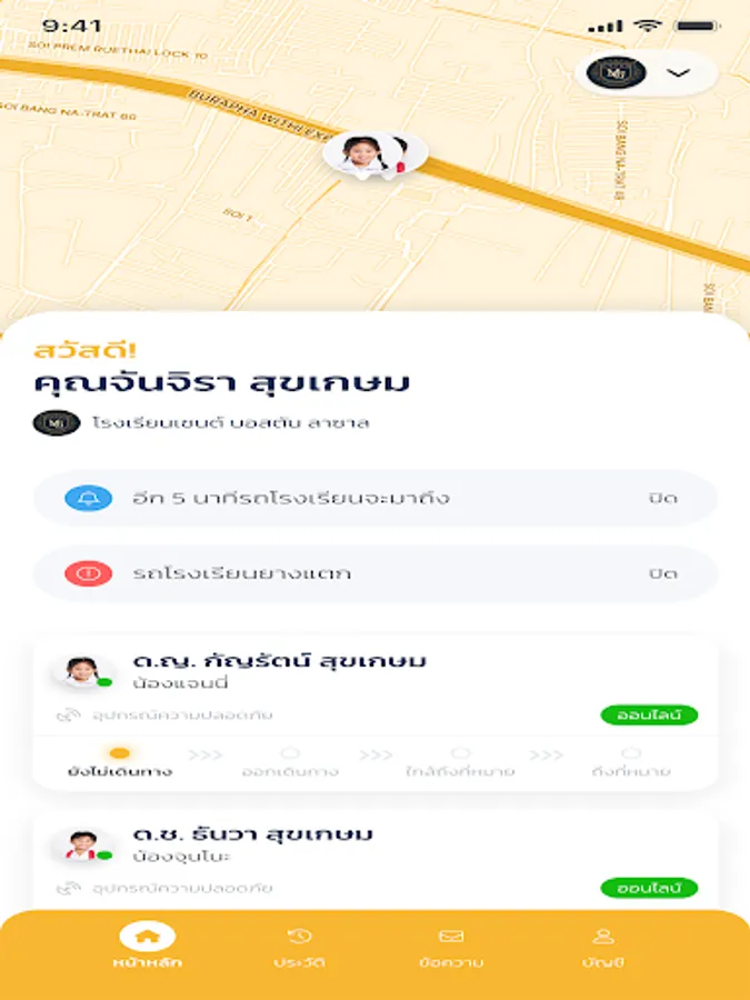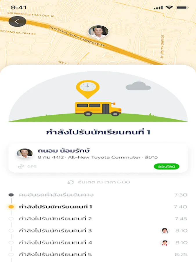 Smart School Bus system, a new school bus project for safe children that applies digital technology to raise safety standards for school buses. To reduce the loss of children being forgotten and left alone in the car. Parents can track the status of the school bus journey that the student boarded through the application. The system will notify you when the car is approaching to pick up students. Students getting on or off the school bus to ensure that Parents' students travel to school or return home safely.