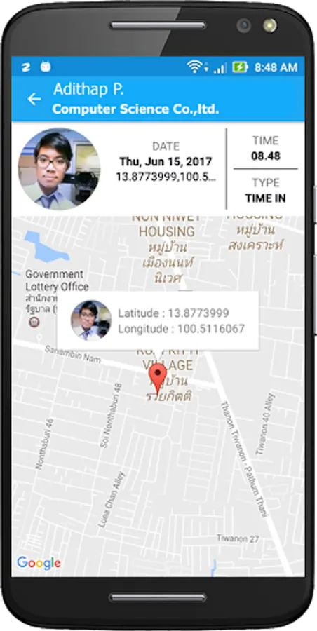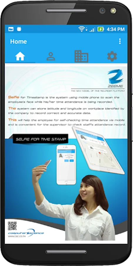 This software is used to make Time Stamp by Selfie via Smartphone and checks Longitude and Latitude, then stores in the system. It is available both iOS and Android. The software automatically compares an image chosen by the face capture with images stored in a user smartphone. Guarantee high probability of correct recognition and quick search of databases containing hundreds or thousands of images.