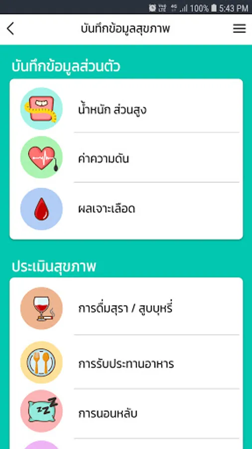 - Menu "Health Record" is used to record their daily health information. And preliminary health assessment through the app