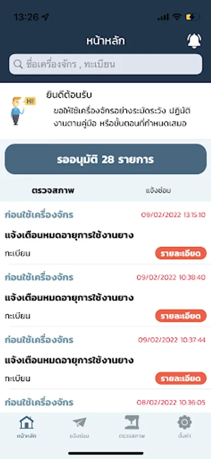 - able to report problems or renew contracts related to machinery and look back