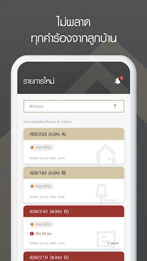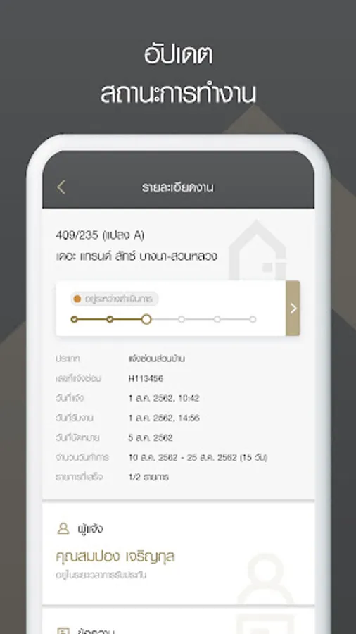 GOLDENLAND is committed to developing the best for our residents. In addition to the standard of housing construction After-sales service is always our top priority. GLR Foreman is here to facilitate our work. And create the most efficient working system Including receiving repair notifications from residents Communication between residents Liaison between internal personnel In order to get excellent service And can be continuously developed in the future