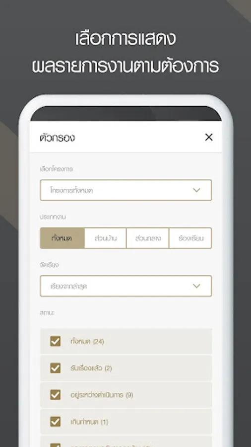 Choose to display the work items as needed, including projects, job types, status, allowing faster access to work items.