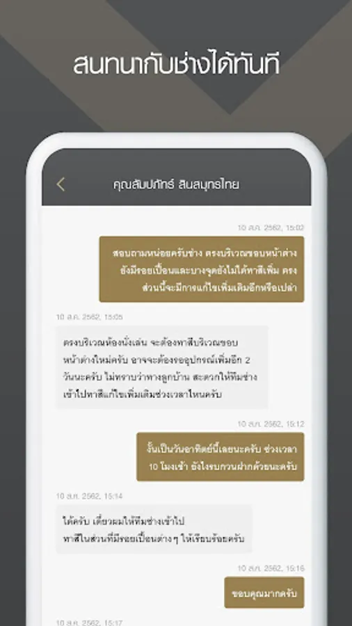 Communicate directly with the mechanic responsible for repairs. Can know the progress of the repair notification Ask a Question Or provide feedback immediately